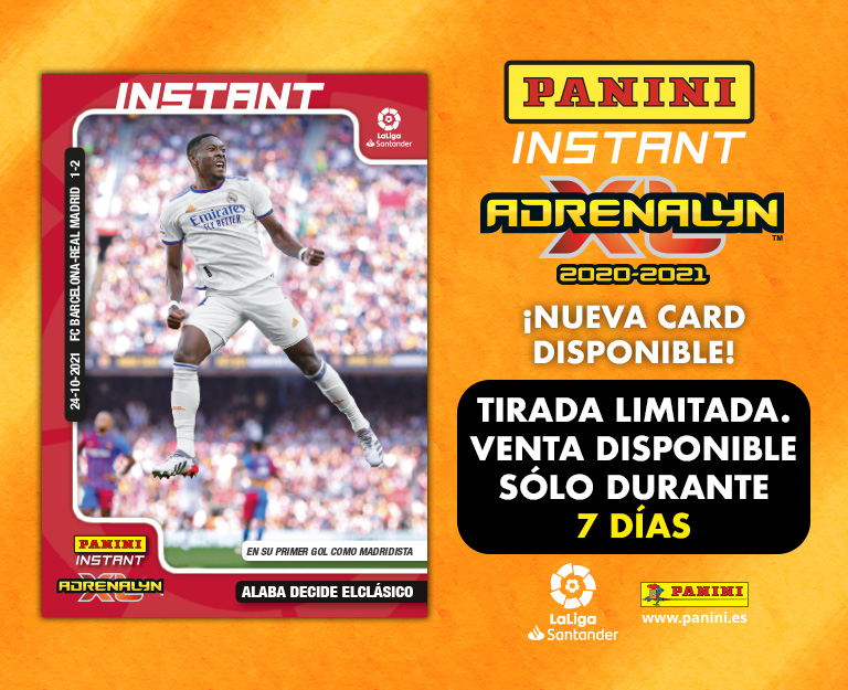 Panini pone a la venta una nueva carta de Panini Instant. El protagonista de esta nueva carta, la #14 de la colección, es David Alaba que, con su gol, puso por delante a los merengues en el Clásico que el conjunto blanco ganó por 1-2 en el Camp Nou.